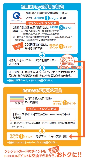 後払い型のQUICPayと前払い型のnanaco、2つの電子マネーが一体となった、中部しんきんオリジナルデザインのカードです。